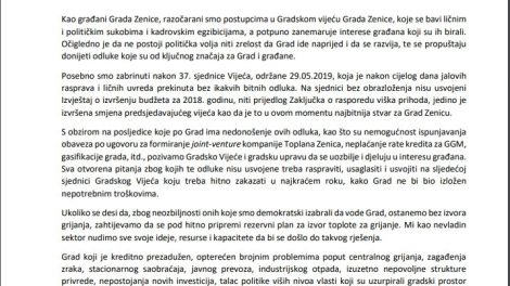 Otvoreno pismo vijećnicima Gradskog Vijeća, gradskoj upravi i građanima Zenice – Kao građani Grada Zenice, razočarani smo postupcima u Gradskom...