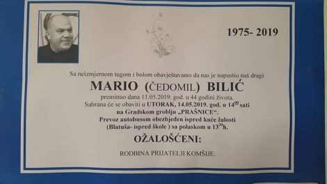 Sahrana Marija Bilića u utorak, pročitajte oproštajnu poruku Sajjrinog oca Mirsada Pripadnik MUP-a ZDK Mario Bilić biće sahranjen u utorak u 14 sati...