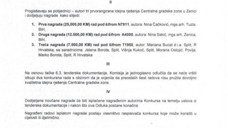 Najbolji rad idejnog rješenja centralne gradske zone u Zenici Nine Čačković iz Tuzle, autorici nagrada od 25.000 KM. . Komisija za provođenje...