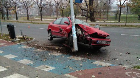 FOTO: Fiatom udario u stub na Bulevaru, vozač napustio bolnicu – Na Bulevaru Kulina bana, nedaleko od stadiona Bilino Polje, jutros se...