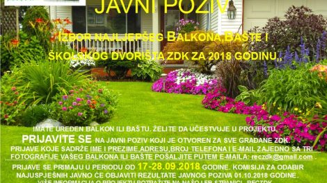 Javni poziv: Izbor najljepšeg balkona, bašte i školskog dvorišta ZDK za 2018. – Imate uređen balkon ili baštu, želite da učestvujete u...