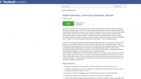 POSAO U FACEBOOKU: Market Specialist – Community Operations (Bosnian) – Kompanija Facebook je objavila oglas putem kojeg želi u Bosni i...