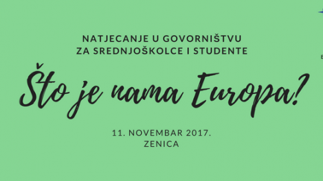 Natjecanje u govorništvu za srednjoškolce i studente – Šta je nama Europa? Prijavite se: Podignite glas. Recite svoje mišljenje. Usudite se...