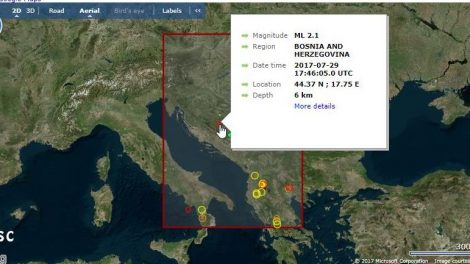 Zemljotres na širem području Zenice zabilježen u 19.46 sati- Seizmološki uređaji zabilježili su u subotu uvečer slabiji zemljotres na teritorijalnom...