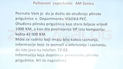 Za rubriku Vjerovali ili ne: iz ArcelorMittala ukradena plinska prigušnica sa Visoke peći teška dvije tone, Uprava nudi nagradu za informacije...