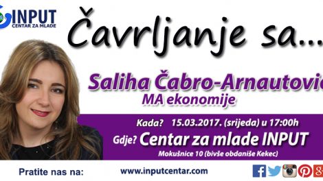 INPUT: Čavrljanje sa ….. Saliha Čabro-Arnautović – Ove srijede “Čavrljanje sa MA ekonomije, Saliha Čabro-Arnautović”. Šta vas očekuje na...