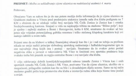 Direktor Čelika pisao upravi NK Vitez – Rukovodstvo NK Vitez je predstojeću utakmicu protiv NK Čelik (subota, 15 sati) na Gradskom stadionu u...