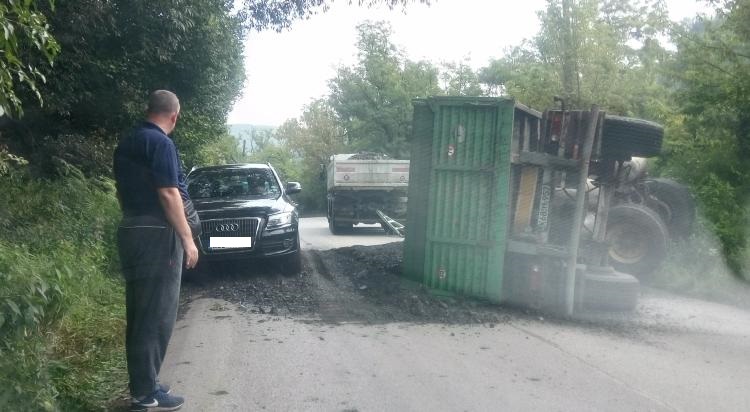 Foto: prevrnula se prikolica sa ugljem – Na regionalnom putu Zenica – Vitez preko vjetrenica, danas je zabilježena neobična saobraćajna...