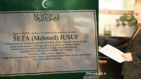 Danas poslije podne namaza, u 13.30 sati u haremu Čaršijske džamije u Zenici biće klanjana dženaza našem sugrađaninu Jusufu Šeti. Ukop će biti...