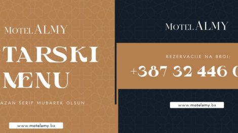 RAMAZANSKI MENU MOTELA ALMY – 2024. GODINA Dragi naši, predstavljamo Vam naš iftarski menu za Ramazan 2024. godine. Dočekajte iftar u...