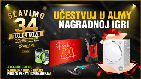 Učestvuj u Almy nagradnoj igri. Svi kupci koji naprave račun veći od 100KM u Baucentrima ALMY u Zenici i Zavidovićima ili salonima Ceralmyco, 03, 04...