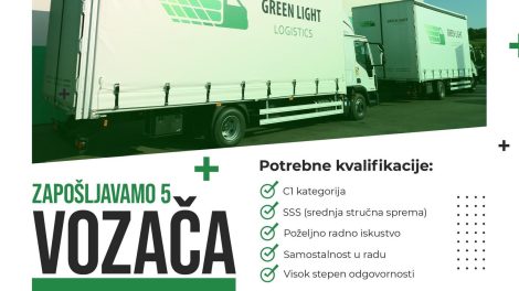 Zapošljavamo pet (5) vozača Potrebne kvalifikacije: – C1 kategorija – SSS (srednja stručna sprema) – Poželjno radno iskustvo...
