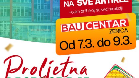 Poštovani kupci, od 07. do 09.03., pripremili smo za vas sniženje na kompletan asortiman u Bau centru Almy u Zenici. Svi artikli su sniženi 15%...