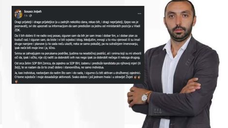Boško Jefić, kandidat SDP-a za ministra obrazovanja, nauke, kulture i sporta u Vladi ZDK, koju je za sjednicu Skupštine ZDK zakazanu u petak u 10...