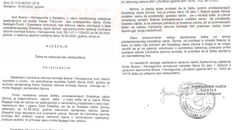 Sud Bosne i Hercegovine odbracio je, kao nedopuštenu, žalbu predsjedavajućeg Gradskog vijeća Zenica Mirze Husetića, saznaje Zenicablog. Ovo rješenje...