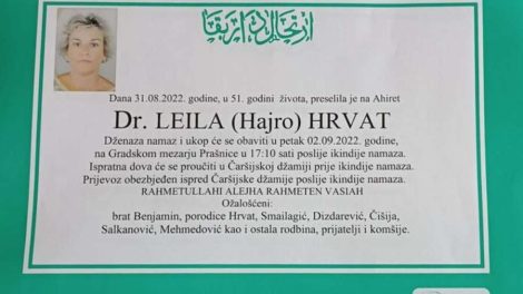 Večeras je nakon kraće i teške bolesti, preminula dr. Leila Hrvat, ljekar i specijalista Službe za neurologiju Kantonalne bolnice Zenica. Mnogobrojne...