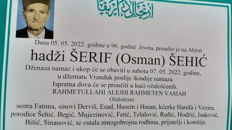 U četvrtak 05.maja 2022.godine na Ahiret je preselio najstariji Vrandučanin, hadži Šerif (Osmana) Šehić, u svojoj 96.godini života. Rođen je u...