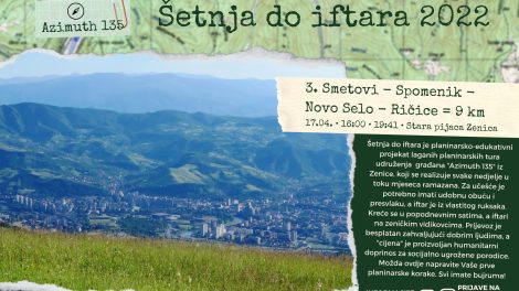 Treća #ŠetnjaDoIftara vodi nas u masiv Smetova, planine na istočnoj strani gradskog područja Zenice i najpopularnijeg zeničkog izletišta. Padine...