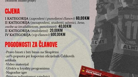 U svima nama utkan je jedinstveni crno-crveni DNK jer Čelik je Zenica I zato.. pokaži svoju pripadnost i postani Čelikov član Učlaniti se možete...