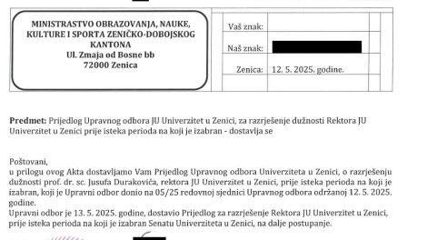 SAOPĆENJE ZA JAVNOST UNZE: Politički nezakoniti pritisci na Univerzitet i zloupotreba položaja predsjednika Upravnog odbora Univerzitet u Zenici...