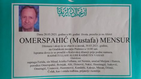 U Zenici je jučer, 28. marta preminuo dugogodišnji profesor i direktor Prve (Opće) gimnazije u Zenici Mensur Omerpahić. Pripadnici mnogih generacija...