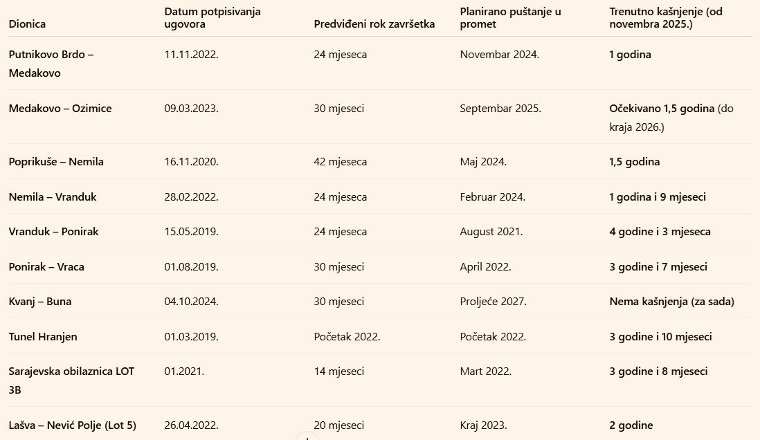 To znači da je dionica trebala biti završena u novembru 2024. godine. Radi se u kašnjenju od godinu dana.
