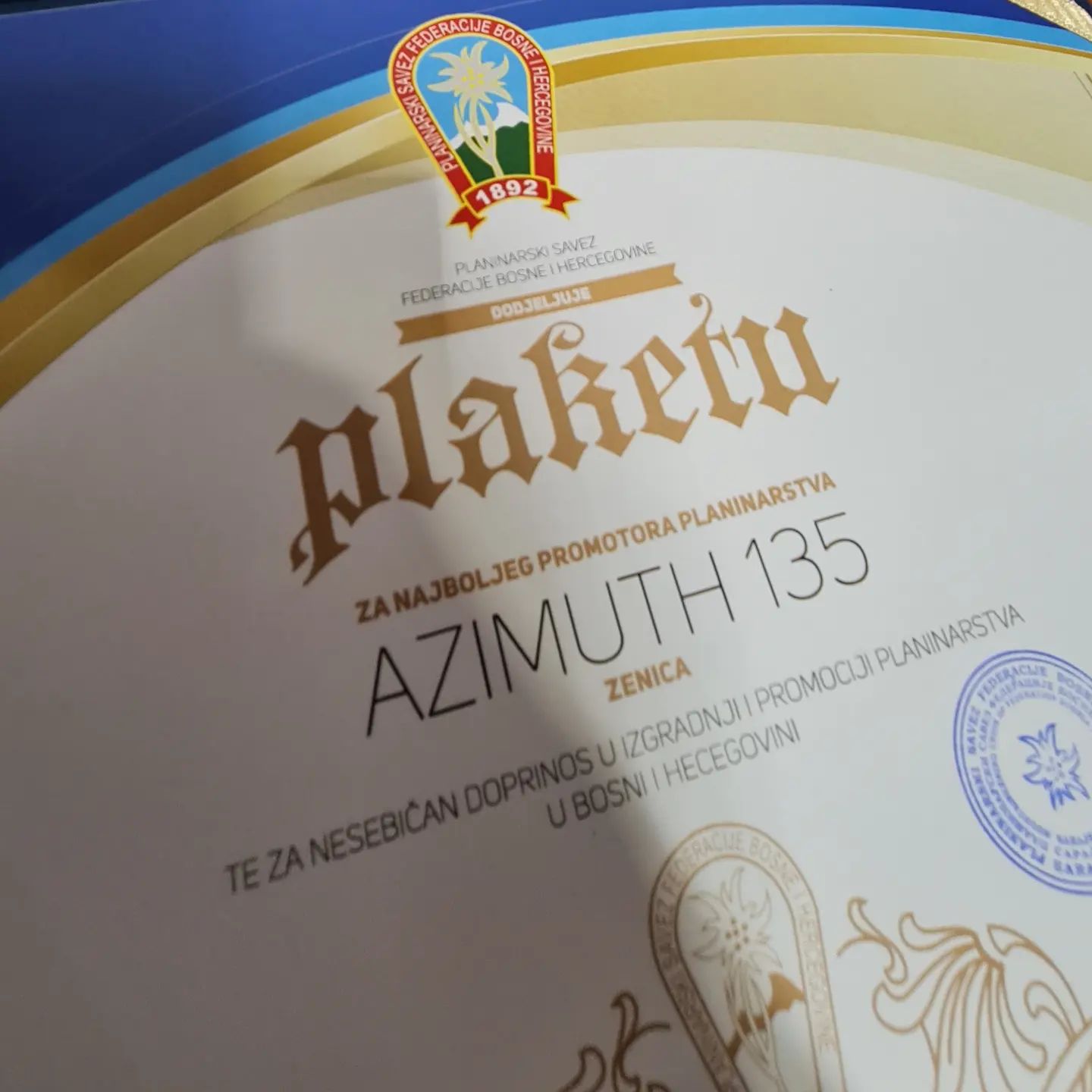 Azimuth 135 Zenica dobitnik Plakete za najboljeg promotora planinarstva u BiH