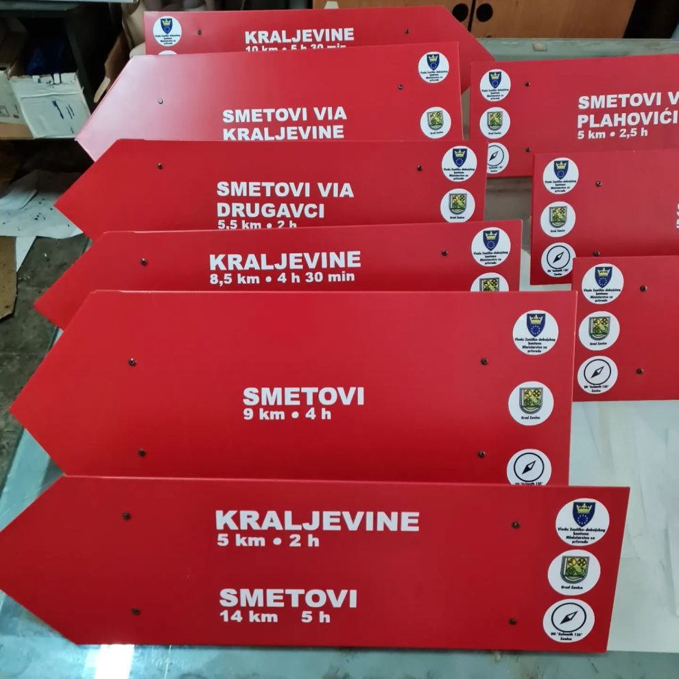 Zahvaljujući vještim rukama, stručnom znanju i neumornim mašinama majstora iz De-lima i BPanela, 48 smjerokaza sa daljinarom u kilometrima i prosječnim satima/minutama hoda do naznačenih odredištâ bit će postavljeno na stubove na početnim i krajnjim tačkama trasâ, te na raskršćima dviju i više stazâ na planini Smetovi.