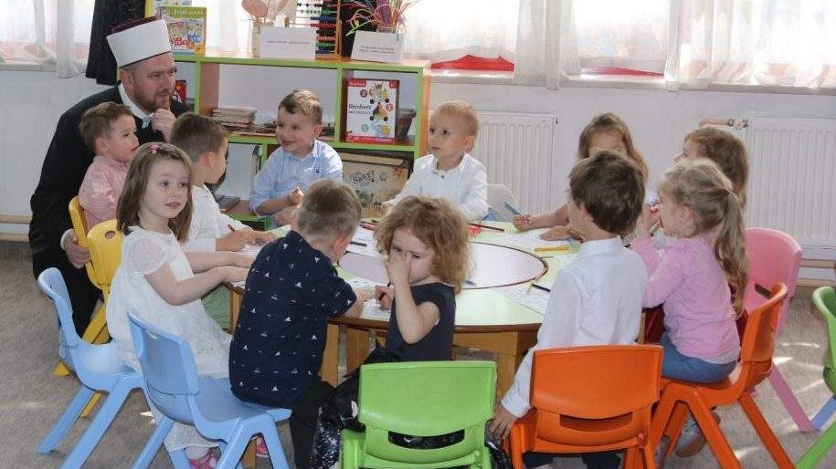 Prilikom obilaska odgojnih grupa glavni imam je djeci čestitao bajramske praznike, a djeca su u ime ustanove uručila bajramske čestitke.