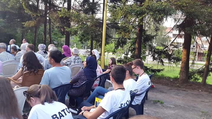 Tribini je prisustvovao veliki broj posjetilaca, a u programu tribine učestvovali su koordinatori udruženja Baton i to: Anisa Šero i Amila Ismić u ulozi moderatora, Amina Bajramović i Saida Skopal u muzičkom dijelu, Sedžida Beganović je recitovala pjesmu Deseta vrata pakla iz knjige Keraterm književnika Rezaka Hukanovića, a mladi recitatori koordinatori Udruženja čitali su svjedočanstva iz knjiga u kojima se opisuju pojedinačne strahote iz logora Omarska.