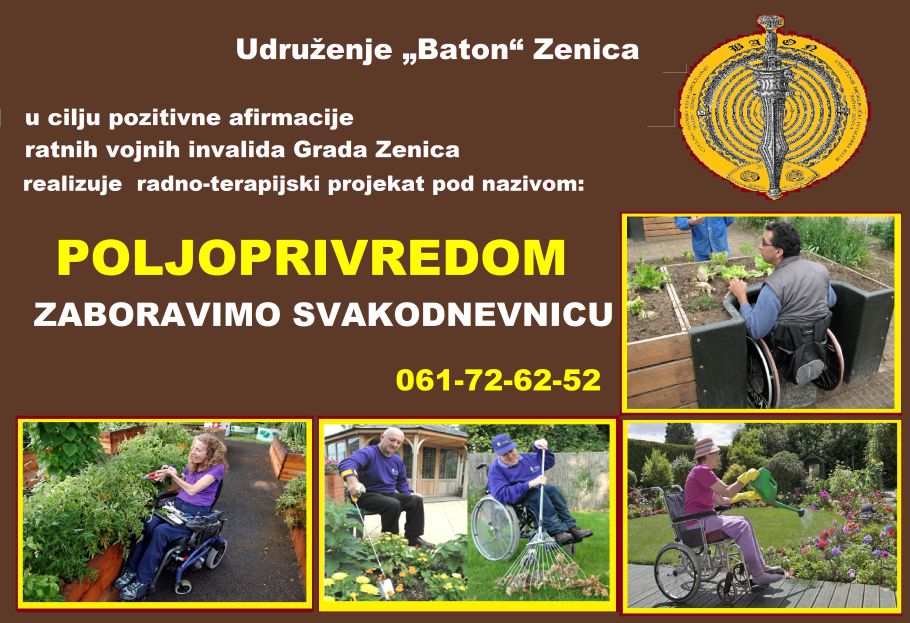 Udruženje „Baton“ Zenica u cilju pozitivne afirmacije ratnih vojnih invalida Grada Zenica, realizuje radno-terapijski projekat pod nazivom: