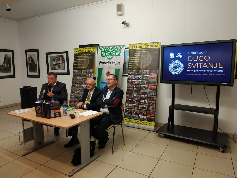 Batonova promocija romana “DUGO SVITANJE” autora Halida Kadrića – Muzej Grada Zenica je i ponedjeljak, 30.septembra, bio tijesan za mnogobrojnu publiku. Klub paraolimpijskih sportova „Baton“ Zenica, organizovao je promociju romana “Dugo svitanje” autora Halida Kadrića. I kako reče na jednoj od promocija, akademik Ferid Muhić, da su sve historijske knjige o Bošnjacima spaljene a da je ostao samo ovaj roman u četiri toma i na 2700 stranica, ne bismo bili uskraćeni za istinu. Akademik Nedžad Ibrišimović, na jednoj od promocija rekao je da svaka kuća Bošnjaka treba da ima ovaj roman, da diše zajedno sa tom kućom.