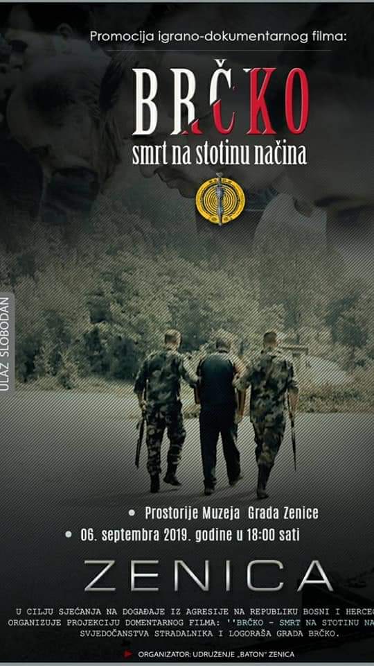 BATONOVI MUHABETI: U Zenici uspješna projekcija filma “Brčko – smrt na stotinu načina”  –  U cilju  sjećanja  na  događaje iz agresije na Republiku  Bosnu i Hercegovinu,  Udruženje Baton Zenica u petak 6. septembra 2019. godine, u prostorijama Muzeja  Grada Zenice  organizovalo je projekciju igrano-domentarnog filma pod  nazivom: ”Brčko – smrt na stotinu načina”, svjedočanstva stradalnika i logoraša Grada Brčko.