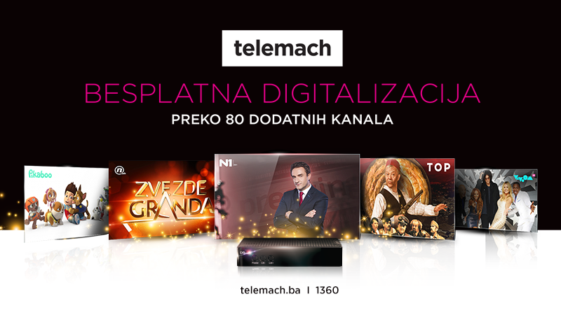 Besplatna digitalizacija za analogne korisnike u Telemachu. – Nakon prvog novogodišnjeg poklona, otključavanja promotivnih kanala svim korisnicima digitalne televizije, iz Telemacha stiže još jedna dobra vijest za sve pretplatnike Osnovnog TV paketa analogne kablovske televizije.