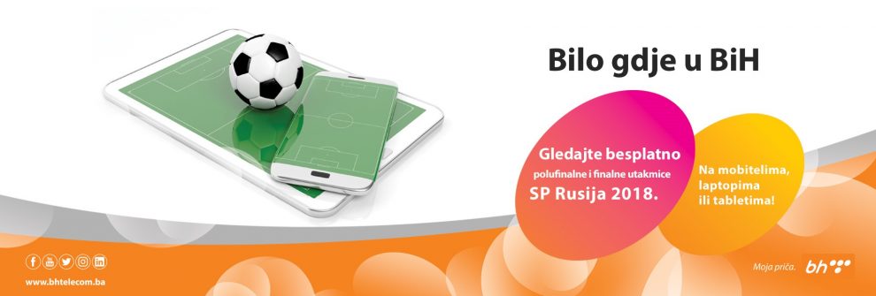 Besplatno gledajte polufinalne i finalne utakmice SP Rusija na mobitelima ili tabletima – Svi korisnici usluga BH Telecoma koji žele polufinalne i finalne utakmice Svjetskog nogometnog prvenstva na BHT1 kanalu pratiti putem interneta, na svojim mobitelima, laptopima ili tabletima, imaće tu mogućnost, i to besplatno, bilo gdje na području BiH.