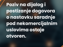 Stav BH Telecoma je da se poslovna i pravna pitanja trebaju rješavati kroz direktan dijalog i formalne procedure, a ne putem medijskih pritisaka. BH Telecom ostaje otvoren za dijalog i postizanje dogovora u okviru važećih pravnih i poslovnih okvira.