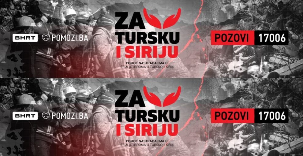 Humanitarna kampanja “17006 pozovi i pomozi” za nastradale u zemljotresima u Turskoj i Siriji nastavlja se i trajat će do 31.3.2023. godine. Nakon uspješno završenog prvog dijela humanitarne kampanje I Teletona kojeg su organizirali Radiotelevizija Bosne i Hercegovine – BHRT, javni medijski servis Bosne i Hercegovine, u saradnji s Udruženjem Pomozi.ba, tokom kojeg je prikupljeno više od 300.000 KM, organizatori su donijeli odluku da se kampanja pomoći nastradalima u zemljotresima u Turskoj i Siriji nastavlja do kraja marta/ožujka ove godine.