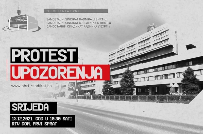 Samostalni sindikat radnika BHRT-a sutra će održati protest upozorenja na prvom spratu RTV doma u Sarajevu.