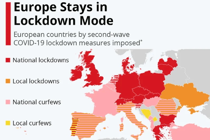 Iako je period ljeta djelovao optimistično, brojne velike države poput Njemačke, Velike Britanije, Francuske, Turske, Italije i Austrije, ali i onih manjih članica EU kao što je Slovenija, već su sedmicama ili mjesecima u “tvrdom” ili “blažem” lockdownu. Vlasti teško odgovaraju valovima pandemije i svakodnevno se bore da suzbiju širenje virusa često mijenjajući taktike borbe.