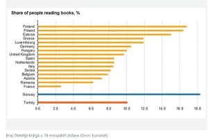 Najviše onih koji čitaju knjige je u Finskoj (16,8 posto), a slijede Poljska, Estonija, Grčka i Luksemburg. Najmanje ih je u Francuskoj (2,6 posto)