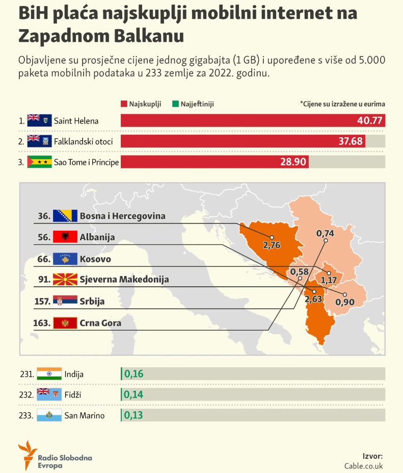 BiH plaća najskuplji mobilni internet na Zapadnom Balkanu