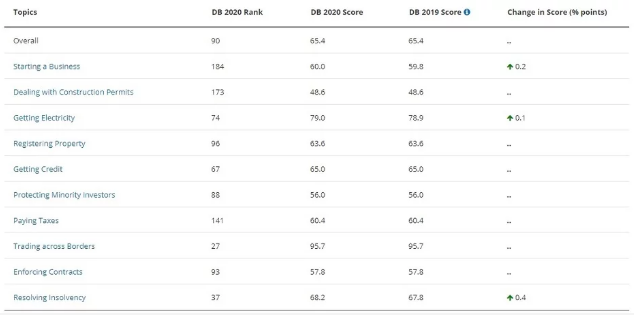 BiH, koja nikada nije ni uživala ugled na svjetskim ekonomskim rang listama, je svoj skromni ukupni prosjek pokvarila zbog sporih zakonskih procedura za pokretanje poslovanja i izdavanja građevinskih dozvola.