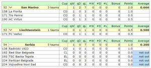 Najgori u Evropi je trenutno srbijanski klupski nogomet. Ekipe iz Srbije osvojile su svega 1 bod (pobjeda Radničkog), a u Evropi imaju čak pet klubova pa se prostom matematike dolazi do prosječna 0,2 poena za državu.