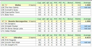Ukupna četiri boda se dijeli na broj učesnika u evropskim takmičenjima (4) pa je BiH tako prosječno osvojila jedan bod.