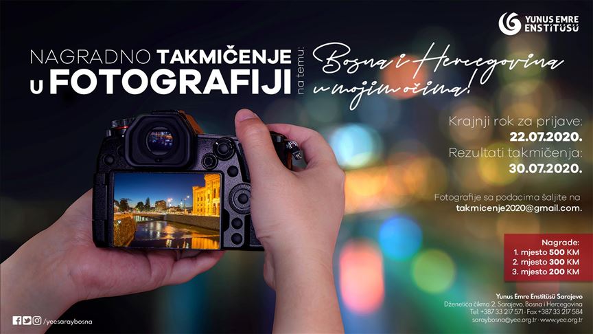 Institut “Yunus Emre” u Sarajevu, u sklopu svojih redovnih aktivnosti organizuje nagradno takmičenje u fotografiji na temu “Bosna i Hercegovina u mojim očima”, prenosi Anadolu Agency (AA).