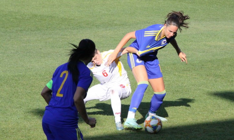 BiH igračice su bile agilnije tokom cijelog meča, a u prvom poluvremenu, u 23. minuti, imale su i penal koji u gol nije uspjela pretvoriti Ana Bojanić. Njen je šut pogodio desnu stativu makedonskog gola. U 38. minuti zbog ofsajda je poništen i gol koji su postigle nogometašice BiH.