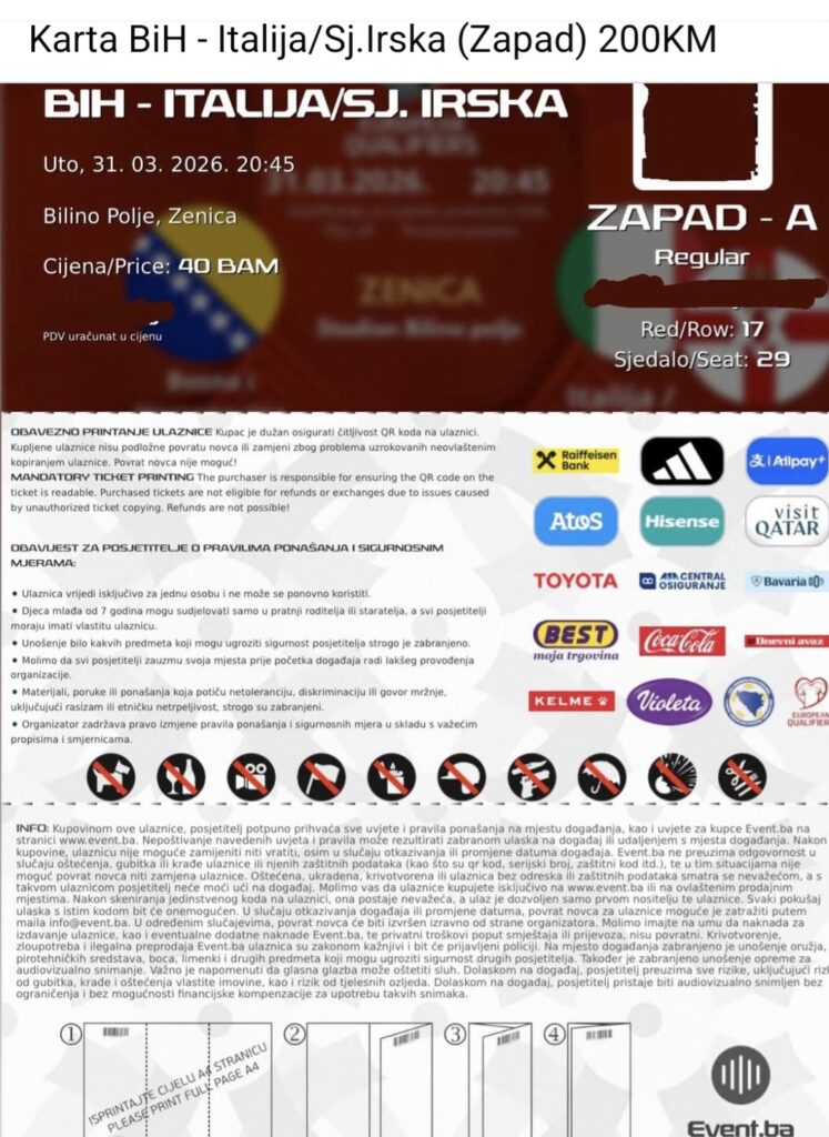 Na internetu su se već pojavile ulaznice na “crno”, a njihove cijene su i do pet puta više od originalnih. Jedan od sretnika koji je kupio kartu preko interneta sada istu prodaje za 200 KM.