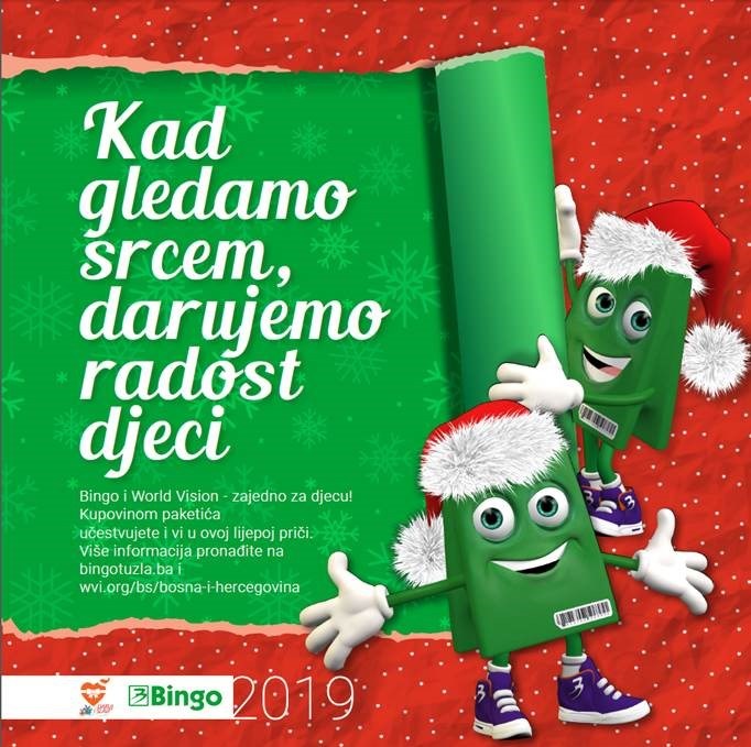 “Praznično vrijeme je vrijeme darivanja. Drago nam je što usrećujemo one kojima je radost najpotrebnija, a to su djeca.  Zajedno s World Vision BiH i našim kupcima, darovat ćemo radost i djeci u Kaknju”, zaključila je Tatjana Paunoski, rukovodilac marketinga Bingo d.o.o.