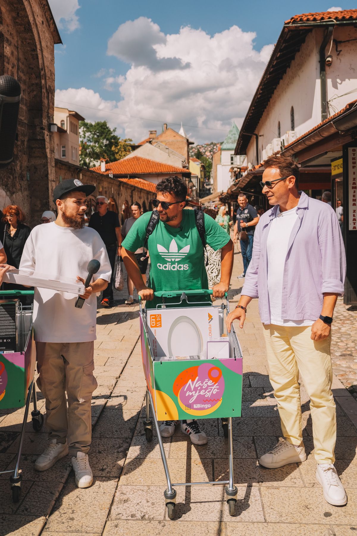Već danima se priča kako Enis Bešlagić vozi Bosnom i Hercegovinom kroz gradove, poslao ga kaže Bingo da obilazi naša mjesta, širi dobru energiju i dijeli poklone. Nova destinacija je bila Sarajevo gdje su mu društvo pravili dvojac iz Helem Nejsea – Čika Gagara i Stihomir Klepić.