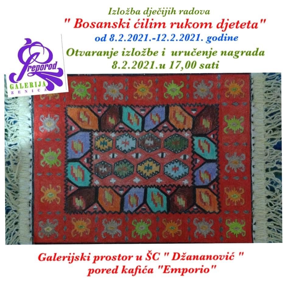 BZK „ Preporod“ Galerija „ Preporod“ iz Zenice je u decembru 2020.godine raspisala Konkurs za najbolji likovni rad na temu „Bosanski ćilim rukom djeteta“.Konkurs je završen 10.1.2021.godine i prispjelo je 639 rada. Učestvovale se 23 osnovne škole i 17 vrtića. Pregledom prispjelih radova, Odlukom Upravnog odbora proglašeni su najuspješniji i to: